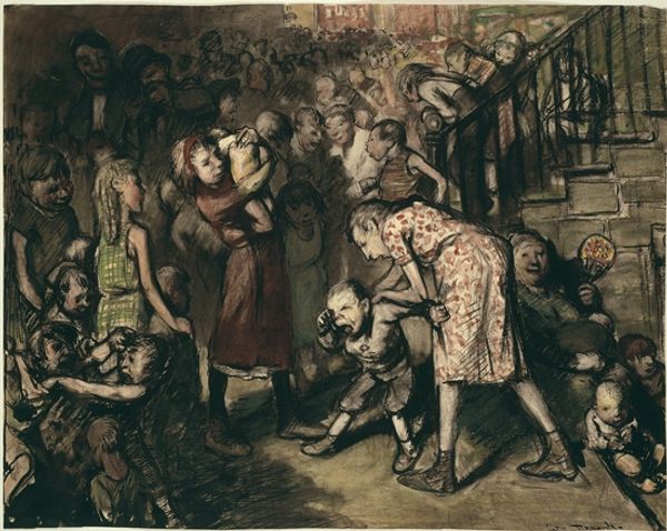Johan Coenraad Leich created this cover design in 1866 for Johannes ter Gouw’s book, In de Kalverstraat. The image depicts a scene of what looks like popular revolt in Amsterdam’s famous shopping street. But what kind of social tensions might be at play here? The Dutch Golden Age of the 17th century saw grand civic displays of unity. However, by the mid-19th century, the Netherlands was undergoing rapid social and economic changes, with increasing class divisions and social unrest. Leich’s image taps into this, evoking a sense of communal uprising, with torch-bearing figures, drummers, and a banner with a jug on it, possibly representing local guilds or fraternities. This design invites us to think about the role of public spaces like the Kalverstraat, not just as places of commerce, but as potential sites for collective action and the expression of social discontent. By studying popular literature and archival records, we might uncover the specific historical events or social issues that inspired both the book and Leich’s compelling cover.