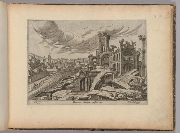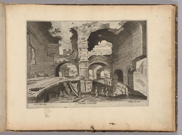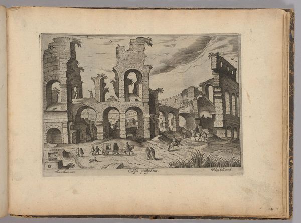 Editor: Hendrick van Cleve III's etching, "Hadrian's Villa," pictures the ruins in such a state of decay. It's kind of romantic, actually. What strikes you most about this depiction? Curator: Well, for starters, it makes me think about time, doesn’t it? The vanity of emperors! Van Cleve gives us crumbling arches, nature reclaiming what was once meticulously planned. It’s a memento mori, almost. Doesn't it give you pause? Editor: Definitely. So it's not just a picture of a place, but a meditation on… everything eventually fading? Curator: Precisely! And maybe a little wink at the artists of his own time, reminding them that even their grandest creations will, one day, become picturesque ruins. Editor: I didn't think of it that way! It adds so much to the drawing, thank you!