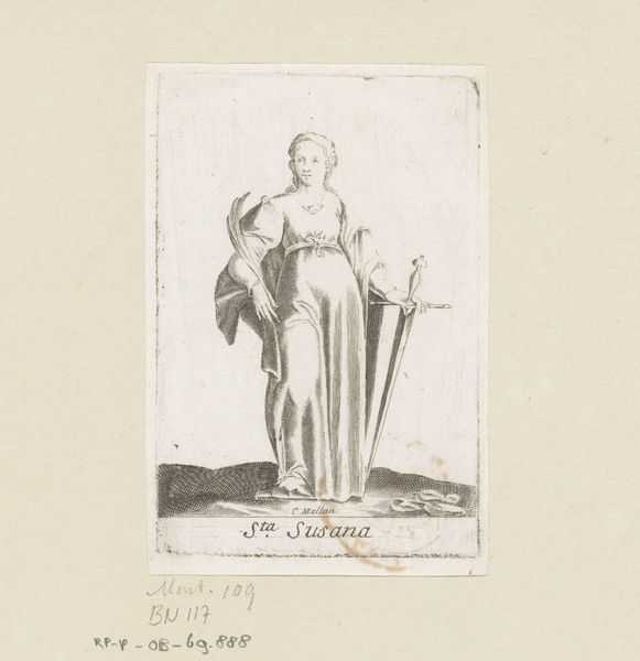 Claude Mellan etched this delicate portrait of Saint Potentianna sometime in the 17th century. Note the radiant halo, a near-universal symbol of holiness, instantly marking her sacred status. She carries a covered plate bearing a small figure, potentially representing an idol she refused to worship, or perhaps the soul she saved. Consider how the halo, derived from ancient solar deities, evolved to signify divine grace in Christian art, appearing in Byzantine mosaics and Renaissance paintings alike. The act of carrying or presenting an offering has roots stretching back to ancient votive practices, a primal urge to appease or connect with the divine, echoing in countless rituals across cultures. There’s a subtle tension in her downcast gaze, a blend of humility and defiance, revealing the complex psychological landscape of faith and devotion, a powerful emotional undercurrent connecting us across centuries. This image acts as a potent reminder of the enduring power of symbols, constantly evolving, and resurfacing in our collective consciousness.