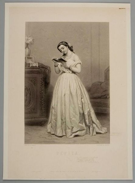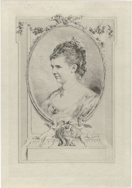 Nicolaas Johannes Wilhelmus de Roode created this portrait of Sophie van Württemberg using lithography. The composition is dominated by a play of textures and carefully distributed light, creating a sense of depth and aristocratic elegance. De Roode masterfully uses the lithographic technique to create a complex semiotic system, with gradations of tone representing not just light and shadow but also social status and moral virtue. The intricate lace and the sheen of the dress function as signs of wealth, while the subdued color palette conveys a sense of decorum appropriate to her royal status. The composition is carefully balanced to give a structured feel, as though she is simultaneously present but also removed by the formality of the portrait setting. Ultimately, it is the lithography itself – its capacity for detailed reproduction and subtle tonal variation – that allows de Roode to create an image that speaks to both the physical presence and the symbolic weight carried by this royal figure. The artwork serves as a fascinating intersection of artistic technique and cultural symbolism.