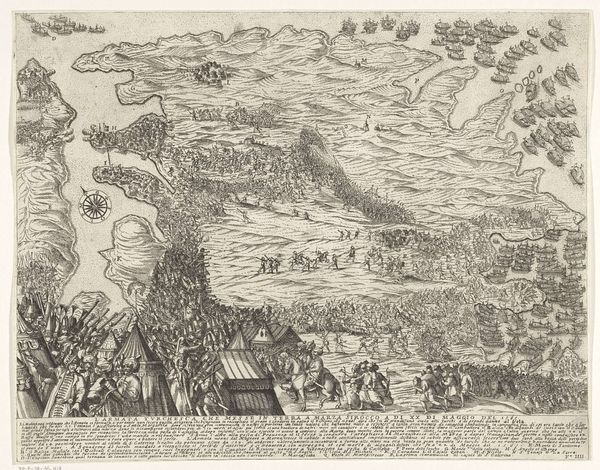 Antonio Francesco Lucini made this print, "Flight and departure of the Turkish army from Malta," sometime between 1610 and 1710. It offers us a bird’s-eye view of the failed Ottoman siege of Malta in 1565. The print depicts the retreating Turkish forces, their ships sailing away from the island, which is mapped in detail. The image isn't just a record of a military defeat; it's steeped in the political and religious tensions of its time. Malta, a Christian stronghold, stood as a strategic barrier to Ottoman expansion in the Mediterranean. The siege was a pivotal moment in the struggle between Christendom and the Ottoman Empire. Lucini’s print highlights the importance of understanding the historical context of art. To fully grasp the print's significance, we might consult military histories, religious texts, and political pamphlets. The meaning of art isn't fixed; it changes depending on the social and institutional conditions.