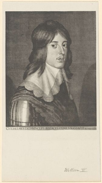 Curator: Here we have a captivating print, "Portret van Willem II, prins van Oranje," created in 1641 by Hendrick Hondius I. The print, an engraving, offers a glimpse into the appearance of Prince William II. Editor: There’s a stillness to it, isn't there? The formal pose contrasted with the soft rendering of the young prince’s features gives a feeling of constrained power, like something just waiting to be unleashed. Curator: Precisely! The tight composition, framed by that oval, creates a contained space, emblematic perhaps of the pressures and expectations weighing on someone born into such a position. Notice the detailing on the prince's doublet—the textures rendered solely through line work. Hondius masterfully uses the engraving technique to convey both light and material. Editor: And considering the historical context—William II’s relatively short reign, his struggles with the States General, and his sudden death—one might see a tragic foreshadowing in that contained composition. Born into privilege, yes, but also into a predetermined script from which there was little escape. He's rendered not as an individual, but as a figurehead even as a child. Curator: A compelling reading! We must consider, of course, the conventions of portraiture at the time. This isn't necessarily a personalized depiction; instead, it’s designed to project status and dynastic power. The use of Latin phrases in the inscription solidifies the portrayal. Editor: Still, even within those constraints, the artist makes choices. He chose to focus on this young man, on his youth, to display this vulnerability so publicly while the expectations of the royal family stand ready to consume the young royal's potential individuality. I’m seeing a poignant commentary on the loss of self in the pursuit of power. Curator: Fascinating to consider. These seemingly conventional renderings contain multitudes. It highlights how even in seemingly straightforward representations, art always opens space for contemporary interpretation. Editor: It encourages us to continuously ask what stories can we read in it now! What's more exciting and crucial than using historical artifacts to inform contemporary understanding.