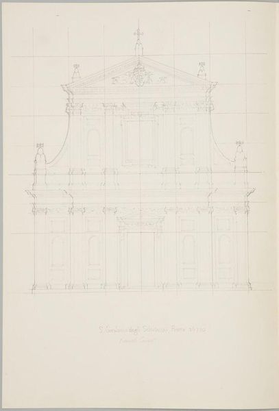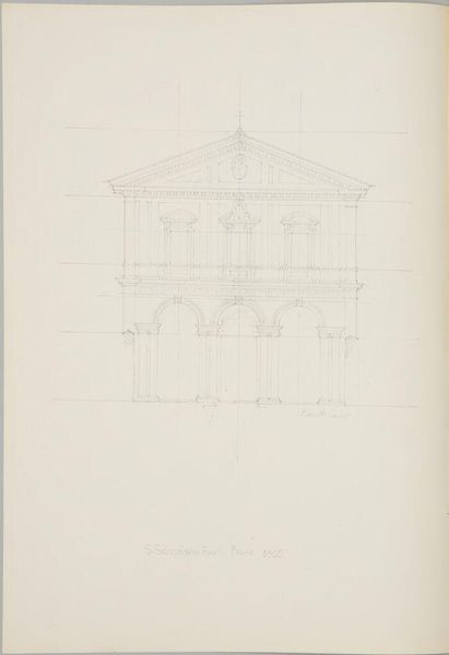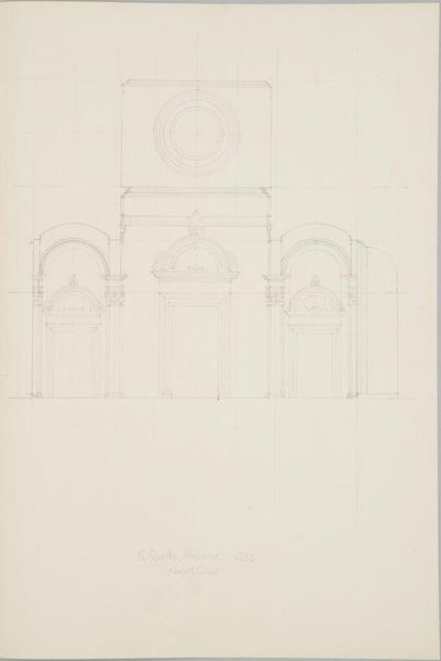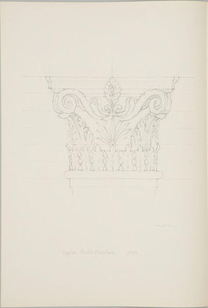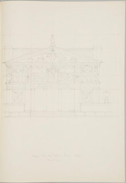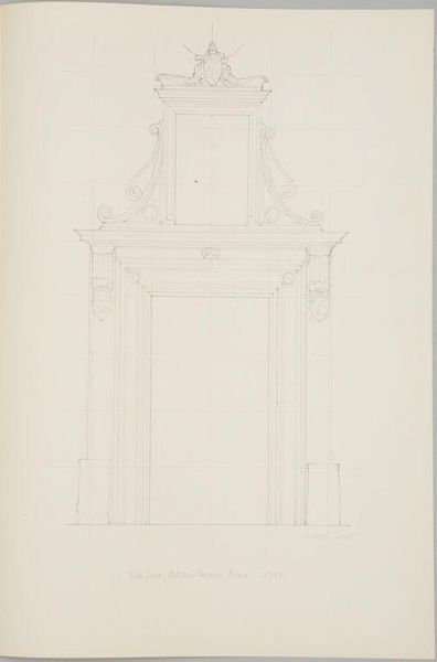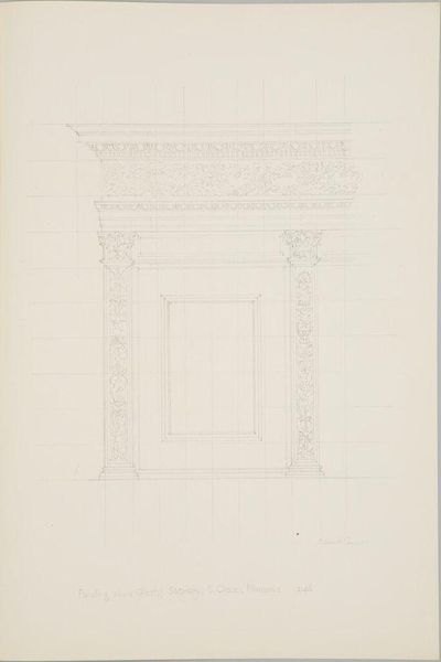 Curator: This drawing by Kenneth John Conant depicts a marble doorway in Eleanor of Toledo's rooms at the Palazzo Vecchio in Florence. It looks like a blueprint. The artist mapped out every detail, down to the decorative elements and moldings. Editor: You're right, it feels preparatory. But the doorway itself suggests a liminal space, a threshold between realms of power and privacy. Do the figures above the door reflect Eleanor's own story or aspirations? Curator: The imagery is classical, evoking a sense of timeless authority. The figures and ornamentation speak to Renaissance ideals, but, more importantly, to the Medici's carefully constructed image of themselves. Editor: Image-making through marble. The choice of material alone—marble, sourced, carved, and transported—demonstrates power and wealth. It turns architecture into a statement about the means of production. Curator: Indeed. It shows how symbols were used to shape a narrative. I see continuity in the classical allusions, an appeal to the values of past empires to legitimize the present. Editor: Looking at it now, the drawing itself becomes part of the story. Another layer of labor, adding to the ongoing interpretation of the Medici legacy.