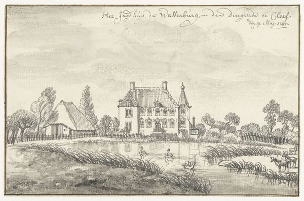 Jan de Beijer created ‘Het Huis te Doorn’ in 1750 using pen and brown ink. Notice how the detailed, linear quality of the drawing invites us to examine the architectural structure meticulously. De Beijer's strategic use of hatching and cross-hatching creates subtle tonal variations that define the forms and textures of the building and surrounding landscape. The formal geometric lines and precise rendering contrast with the organic, flowing lines of the trees and water, creating a dynamic visual tension. This tension highlights the intersection of human-made structures with the natural world. The composition invites a semiotic interpretation, where the castle could symbolize power, stability, and order, while the natural elements suggest the fluidity of change and the passage of time. The drawing destabilizes a fixed sense of place by presenting it as a scene of both permanence and transience. Through its formal structure, the drawing becomes a site for ongoing interpretations about the relationship between architecture and nature.