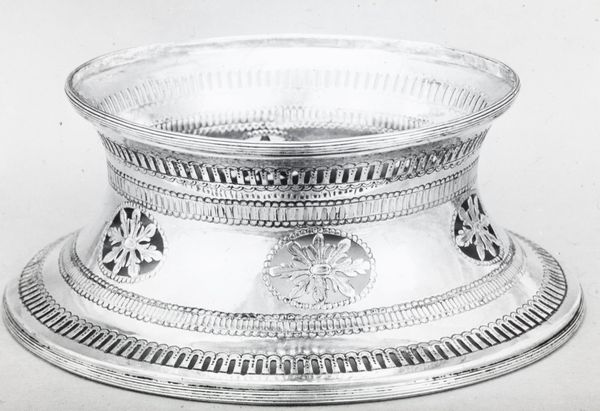 Curator: The refined gleam of this "Glove Tray", dating from 1723 to 1724, is striking. Crafted by M(?).B. from shimmering silver, it's currently housed at the Metropolitan Museum of Art. What are your immediate thoughts? Editor: Utilitarian elegance! The highly polished surface throws back light, and there's a real sense of ritual and status connected with what was put upon this metal stand. I sense both formality and delicacy. Curator: Absolutely. Thinking about who would have used this tray helps contextualize its form. Imagine a member of the French aristocracy placing their gloves here—a deliberate act, loaded with social meaning in the display of status and the separation from labor. Editor: I see several cartouches along the border containing flower motifs; this could point to an embrace of idealized nature, something that aligns with certain artistic movements that glorified innocence as a pushback against elitism. And were gloves always part of that aesthetic? Curator: That's fascinating. The gloves are significant precisely because they both protect and conceal—they signify a detachment from manual work, yet they are, simultaneously, accessories that could enhance tactile interactions and gestures in the right social contexts. Consider the power dynamics involved in who gets to wear them. Editor: It's interesting how an everyday object becomes a marker of identity and class through its symbolism, and you're right about it all pointing back to ideas of privilege! We must question the absence, too: whose hands *didn't* wear those gloves, and whose labor contributed to making this tray? The social narratives it evokes are complex, don’t you agree? Curator: Precisely. It’s the historical and societal context that elevates a simple tray. The symbolism transforms into an entry point for critical exploration. Editor: This makes you realize just how powerful visual artifacts can be to unlock broader discussions, even if something seems only modestly symbolic on its face. Curator: Yes, every piece whispers—or shouts—volumes if we are willing to listen critically.