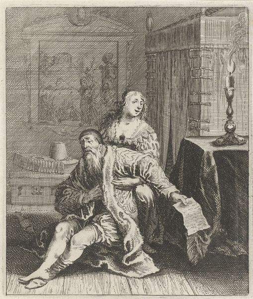 Gabriel Metsu painted ‘A Soldier Visiting a Young Lady’ using oil on canvas during the Dutch Golden Age, a period defined by unprecedented economic growth and global trade. This intimate domestic scene reflects a broader narrative of military presence and its impact on civilian life. We can imagine the power dynamics in play here: the soldier’s confident stance contrasts with the woman’s more reserved posture. The composition reflects gender roles and expectations of the time, where women were largely confined to the domestic sphere. Metsu develops an alternative narrative by using light and shadow, which softens the soldier’s figure and highlights the woman’s face. The small dog at her feet is an allusion to loyalty and domesticity. ‘A Soldier Visiting a Young Lady’ subtly reveals the negotiations of power and affection within a society shaped by war and commerce. The emotional depth of the piece invites reflection on our own responses to love, duty, and the ever-present influence of historical context on our personal lives.