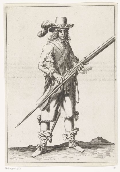 Petrus Rucholle created this etching of a soldier around 1645, amidst the Dutch Golden Age, a time of significant military and economic expansion for the Netherlands. Here we see a soldier cleaning his gun. But look closely; his fancy hat and voluminous breeches suggest that the military was a profession for the upper classes. Military service offered these men opportunities for advancement, but also reinforced existing social hierarchies, as they were also the beneficiaries of colonial expansion. What narratives of power are at play? The intimacy of the soldier's task contrasts sharply with the violence his weapon represents. What might seem like a mundane act is imbued with the weight of conflict, a reminder of the human cost of military campaigns.