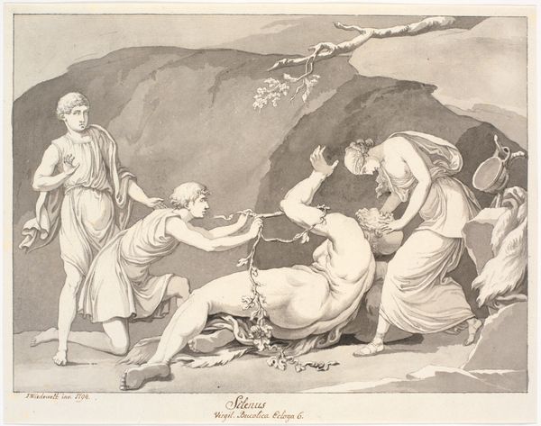 Simon Julien created this print titled ‘Moses on Sinai’ in the 18th century, a time of shifting religious and philosophical perspectives. The piece captures the biblical moment when Moses receives the Ten Commandments, but it does so through a lens that reflects the cultural values of its time. Note how Julien, a French artist, interprets a foundational story of Judaism. The bodies are idealized, almost romanticized, fitting with the Neoclassical aesthetic, yet perhaps distancing them from the raw, transformative experience described in religious texts. Moses is usually depicted as an intercessor between God and the people, and the law as a divine communication. But here the composition and the cherubic figures surrounding him suggest a mediation through European artistic and philosophical traditions. Consider how Julien’s print participates in a longer history of interpreting religious narratives through specific cultural standpoints. The emotional intensity and personal transformation of the encounter are subtly reshaped by the aesthetic and intellectual currents of 18th-century France.