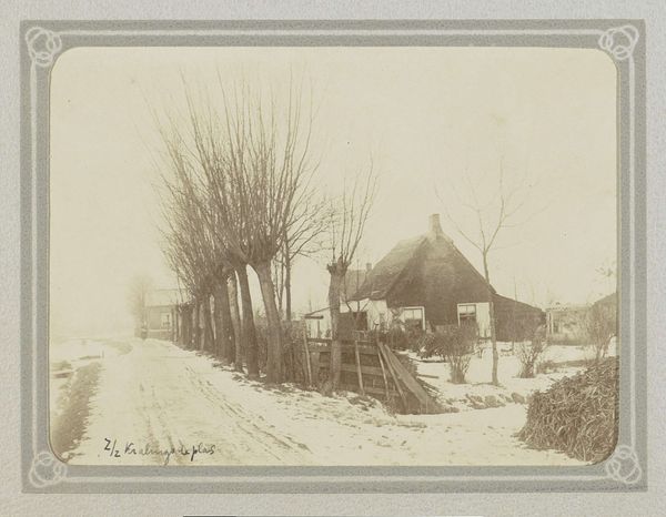 Curator: Let's explore this photograph, "Gezicht op enkele huizen in Murcia, Spanje," taken by Juan Laurent between 1856 and 1863. What strikes you about it initially? Editor: It's quite striking. The photograph offers such a clear and intimate depiction of daily life back then. It has a raw, almost unpolished feel. The house looks so humble. How do you interpret this work? Curator: I see this image as a powerful commentary on the social realities of 19th-century Spain. Look at the architecture, the simple structure, and the materials used. It speaks volumes about the economic conditions and the lives of the working class. Consider, too, that photography at this time was becoming more accessible but still represented a significant investment. What does it mean to have one's image captured and disseminated? Who had access to that technology, and whose stories were deemed worthy of recording? Editor: That’s a good point, I hadn't thought of it in terms of access and power. Does the landscape also contribute to this narrative? Curator: Absolutely. The relationship between the dwellings and the surrounding environment further emphasizes the connection to the land, to agriculture. How does the composition itself, with the house so central and immediate, invite a dialogue about space and belonging? And that cross. What does that symbolize for you, and for the culture that is on display here? Editor: Now I see it offers multiple layers beyond just being a pretty landscape! I appreciate the focus on how art intersects with societal power structures. Curator: Precisely! Examining these intersections gives us a deeper understanding, not only of the artwork, but of ourselves, and perhaps of society in a bigger way. Editor: Thanks. This has totally shifted my perspective!