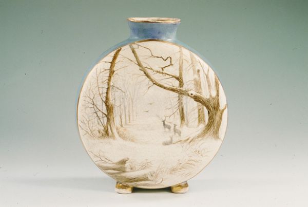Editor: Here we have an undated glass vase entitled "Cameo Glass Landscape Vase" by Émile Gallé. The violet landscape really captures my attention. How do you approach interpreting this work? Curator: Primarily, I'm interested in its formal elements. The interplay of translucent glass with the deeply carved cameo landscape presents a fascinating tension between surface and depth. Consider how the artist uses the colour – a deliberate monochrome – to create atmospheric perspective. Note the way in which he manipulates texture. Does the strategic juxtaposition of these elements create new meanings for you? Editor: It does make me consider the contrast between the tactile and the ethereal. I also notice the Art Nouveau influence, especially in the flowing, organic lines of the landscape and vase itself. What are your thoughts? Curator: Precisely. The Art Nouveau style favored complex, curvilinear designs inspired by nature, which you see replicated here. However, more importantly, it uses several layers of glass of different colours, etching away the top layers to reveal the landscape beneath. Focus on the artist's process of subtraction to bring depth and nuance to his representation. It's not merely decorative; it's about creating a space, manipulating light and shadow. Editor: The layered effect does add complexity. I initially focused on the landscape depicted, but now I'm thinking more about the artist's technique. Curator: By considering its formal properties—the artist's choice of materials, use of color, composition—the artwork gives you new insights into its cultural context. We learn to appreciate its construction and the conscious articulation of meaning. Editor: It’s interesting to consider the visual qualities independently from historical associations. Curator: Indeed. Formal analysis gives you a framework for decoding and appreciating artistic creations.