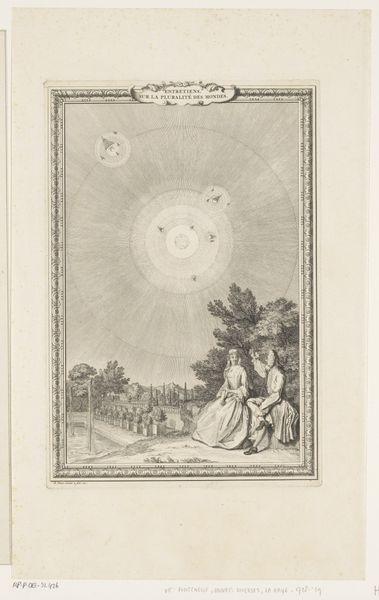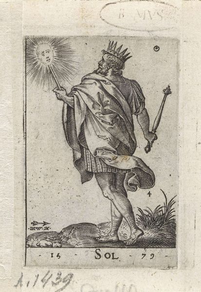 Albert Flamen created "Stralende zon" as an engraving, its dimensions only 85 by 67 mm. The image arranges a radiant, anthropomorphic sun over a landscape. The sun, centrally positioned, dominates with its intense, linear projections. This ordered radiation contrasts with the organic, curvilinear forms of the landscape below, disrupting a coherent sense of space. A semiotic reading suggests the sun’s rays function as signs of enlightenment or power, sharply juxtaposed against the natural world's imperfect shapes. The landscape, detailed yet subordinate, includes structures that hint at human presence, further emphasizing a tension between natural and constructed environments. The visual structure, therefore, sets up a relationship between abstract and representational elements, perhaps destabilizing traditional landscape values in favor of conceptual meaning. Consider how this tension between the geometrical sun and the landscape suggests a larger commentary on human interaction with nature. The artwork invites ongoing interpretation of these symbolic and structural relationships.