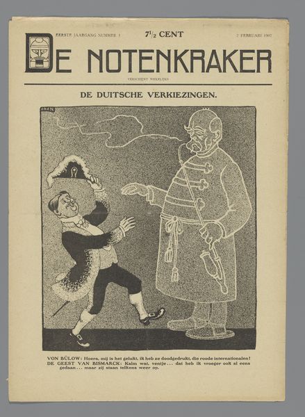 This is Albert Hahn’s ‘The Nutcracker’ from May 5th, 1907, a lithograph on paper. Look at the texture of the paper, how it's aged to a warm, parchment-like tone. This piece feels so immediate and alive, even though it’s over a century old! I’m really drawn to the economy of line. The marks feel really considered, pared back, there's an efficiency to the image making. Take the tree on the left, notice how the artist uses a single, elegant curve to suggest the roundness and fullness of the foliage. It has a confidence about it, and makes me think about the relationship between drawing and humor. It brings to mind the work of Honoré Daumier, another artist who used lithography to create biting social commentary with a similar verve and lightness of touch. Ultimately, it's the image’s energy and sense of spontaneity that make it so compelling. Hahn's work reminds us that art is a process, a conversation, and a way of seeing the world anew.