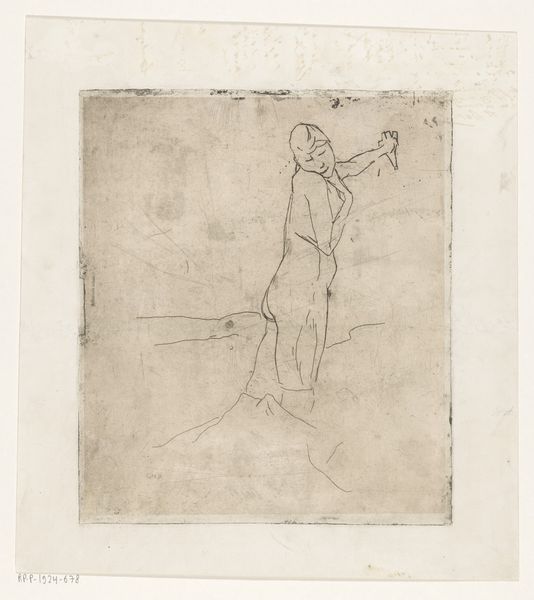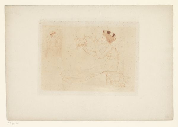 Emil Orlik created this delicate etching, "Woman in a Busy Street," at the turn of the 20th century, a time when rapid urbanization and shifting social norms were transforming European cities. Orlik, who was deeply interested in the people around him, presents us with a confident woman amidst the hustle and bustle. Her assertive stance and fashionable attire challenge traditional, demure representations of women. She's not merely an object of observation, but an active participant in the urban landscape. Consider the historical context: women were increasingly entering public life, advocating for suffrage, and redefining their roles in society. The emotional resonance of this piece lies in its quiet celebration of female agency. This etching, with its understated elegance, invites us to reflect on the evolving position of women in society and the intimate experience of navigating a changing world.