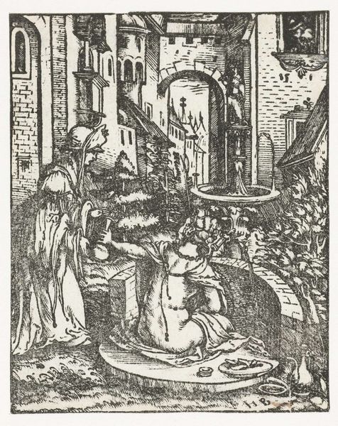 Boëtius Adamsz. Bolswert created this engraving, "Kind en engel omhelzen elkaar," or "Child and angel embrace," a small, but powerful piece. The context of its creation invites us to consider the shifting cultural values of the time, particularly around the spiritual and emotional lives of children. In this tender scene, a child is embraced by an angel, their bodies pressed close in a protective, loving gesture. This embrace counters traditional, more severe representations of childhood, inviting viewers to consider the innocence and inherent worth of a child's soul. The etching captures a moment of pure, unconditional love, set against a backdrop that hints at the world's challenges – a fortified structure and a figure in prayer. Bolswert uses the powerful imagery of a celestial being offering solace. The embrace creates an alternative narrative, one where innocence is sheltered, and love is a guiding force. This image prompts us to reflect on the emotional dimensions of faith. It also highlights the period's emerging emphasis on personal relationships with the divine.