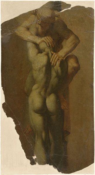 Curator: Here we see Juan Carreno de Miranda's "St. Sebastian," an oil painting created sometime between 1655 and 1665. Editor: Oof, first impression? Agony. And a certain theatricality in the way the light catches his skin against the dark backdrop, very dramatic! Curator: Absolutely. The Baroque style emphasizes those dramatic contrasts. Considering the historical context, we can see how this piece intersects with the artistic trends that favored dynamic compositions, rich colors, and intense emotion, reflecting the Counter-Reformation's spiritual fervor and its patrons consumption. The work and materials were a display of affluence. Editor: It's fascinating how pain can be depicted so... beautifully? There’s a vulnerability, a raw humanity laid bare here, not just physical suffering but something deeper in his expression. I wonder about de Miranda, what was he grappling with when he painted this? Did he see St. Sebastian as a martyr, a victim, or maybe even a symbol of resilience? I mean, he survived being shot full of arrows, the ultimate comeback kid! Curator: Right, his survival is key. St. Sebastian was a Roman soldier, martyred for his Christian faith. Arrows were part of it, yes. But his resilience led to his veneration as a protector against plague and disease; and beyond the iconography, considering oil paint at this time, and what pigments would be available would lead us to more concrete interpretations around availability of resource, artistic and religious context, in Spain under the control of Philip IV. Editor: The details, those rivulets of blood. Ghastly and graceful at once. You almost feel his pain, but from afar, like watching a play. The arrows themselves, the labor that goes into creating the individual piece would be very time consuming.. It makes you question who really makes the materials, what their relationship is with their craft? Did de Miranda ever interact with them at all? Curator: Precisely, these historical connections lead us to understand not only the artistic achievement but also broader implications regarding culture. The historical weight surrounding materials and religious connotations is not merely confined in individual art history. Editor: So, after dissecting it all, the light, the lines, the lore, I still come back to that face. Defeated, but not broken. Maybe that’s the enduring power of "St. Sebastian." Curator: A synthesis, perhaps, between the artist’s world and ours, and that is not without context.