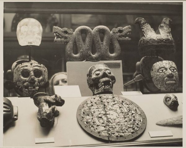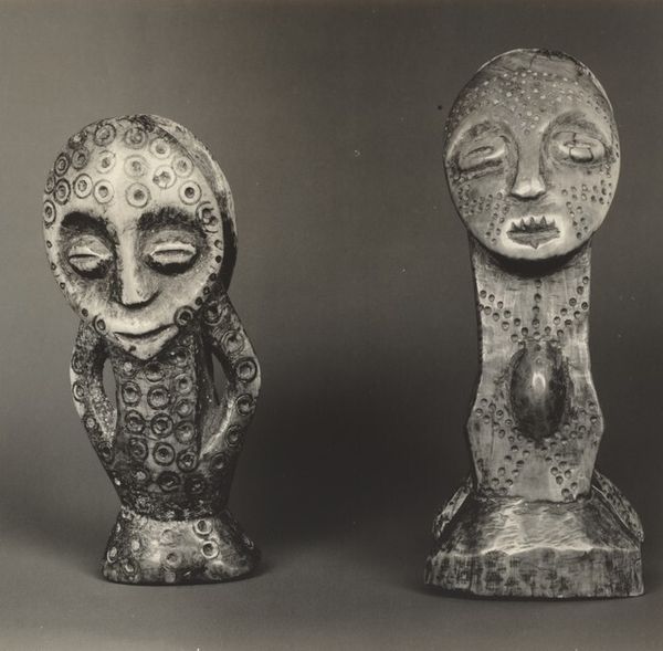 This photograph by Isidore Kinsbergen captures a terra cotta group in Karta Wangungan, West Java. Kinsbergen, a Dutch photographer, documented the Dutch East Indies in the late 19th century. The group features two figures with exposed phalluses and two women holding children. The phallic figures might relate to fertility or power, while the women embody nurturance, so what are we to make of their juxtaposition? Are we meant to understand these figures as types, in some way representative of society? The figures have a raw, almost crude, quality. This may be a reflection of the available tools, or perhaps the artist sought to challenge traditional idealized representations, instead capturing something more visceral. The photograph itself, taken by a colonial photographer, invites us to consider the power dynamics inherent in the act of representation, of whose stories get told and how. The photograph serves not just as an aesthetic object, but as a cultural artifact, laden with the complexities of identity.