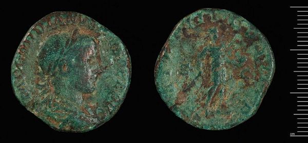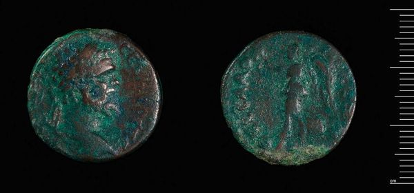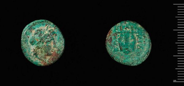 Editor: This bronze follis, struck in London during the reign of Constantine I, appears remarkably humble for an object representing imperial power. Curator: Indeed, its current state evokes a sense of temporality. The encrustations and wear speak volumes about its journey through history, its materiality fundamentally transformed by time. Editor: Considering its function as currency, it highlights how the Roman Empire was made materially accessible. Curator: Precisely. Note the iconographic program: the laureate head of Constantine, the divine personification. The arrangement signifies imperial authority through established visual language. Editor: It’s compelling how this small object embodies the vast economic and social networks of the Roman Empire. Curator: It's a microcosm of power, isn't it? A potent symbol rendered in modest materials, transformed by time. Editor: Yes, it truly makes you consider what hands it passed through, the labor, the value it represented, and the power it symbolized.