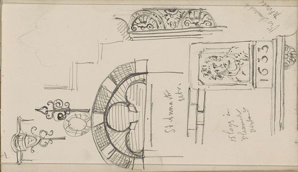 Curator: This is Isaac Gosschalk’s graphite and pencil drawing, "Fronton van een gebouw te Hannover," created between 1866 and 1868. Editor: It has a tentative, almost ghostly quality. The sketch-like nature makes me think of lost histories and architectures. Curator: Note the careful rendering of architectural details—the lines are economical yet precise. Look at the geometric solidity achieved with just graphite on paper. Editor: But beyond that, I see a potent reminder of societal upheavals during that period, right after the Austro-Prussian war when the Kingdom of Hanover was annexed by Prussia. It's a fleeting capture of something about to be erased. Is this drawing meant to serve some act of remembrance, resistance? Curator: Perhaps. But what commands attention is Gosschalk’s ability to suggest depth and volume. The shading and subtle gradations bring out the baroque intricacies of the building’s fronton, a hallmark of classical architecture reinterpreted in 19th-century civic design. Editor: I'm drawn to the multiple views presented here – not just one facade but fragments, alternatives. This speaks to the subjective act of observing, almost challenging a singular, dominant narrative. It invites multiple readings of a place marked by conflict and transition. Curator: Undoubtedly. Though what also fascinates me is its status as a study, a prelude to a potential building or simply an exercise in form and perspective. The material itself prompts such observations – think of the grain of the paper, the specific hardness of the graphite pencil... Editor: All the same, I'm hard-pressed not to read the cityscape, sketched with such vulnerable strokes, without acknowledging its complicated birth and subsequent disappearance. How the architectural fronton speaks, or *spoke*, to power is not an entirely absent question, is it? Curator: Perhaps this ephemeral quality lends the drawing its unique beauty, don't you think? It's more than just a depiction; it’s an exploration of the possibilities within the act of drawing itself. Editor: True, its fragility does add to the resonance—a quiet whisper from a period of dramatic transformation.