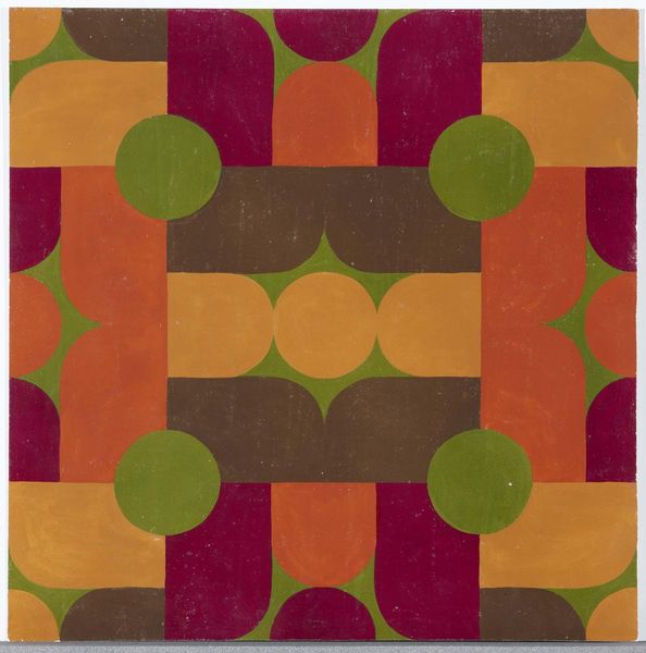 Soledad Sevilla made this untitled painting with what looks like oil on canvas and she's working with a limited palette of muted purple, moss green, and burnt orange. It's like she's trying to find a new way of seeing with simple shapes and repetitive patterns. The surface of the canvas is really interesting, there's a texture that seems to be built up of thin layers of paint, almost like she's layering time itself. The shapes are softly delineated, and it's hard to tell what tools she used. Look at how the purple and green forms interlock, creating a push and pull effect. The way she uses the warm orange to peek through, it creates a vibrant energy, almost like a hidden pulse. Sevilla’s work reminds me a bit of Agnes Martin, in its quiet devotion to simple forms and the way she uses repetition to create a meditative space. It's a painting that invites us to slow down, to really look, and to see how the smallest gestures can create something so expansive and resonant.