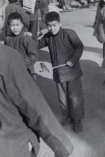 Robert Frank made this photograph in Peru; it's a page from a book, so it’s almost certainly made with a handheld camera. The picture has an honest, grainy, on-the-fly quality. You can tell he wasn't hanging around waiting for the golden hour. The lack of contrast makes it a study in grey. The light feels flat and even, the subjects—two men with hats carrying heavy loads—stare into the camera. Frank's work feels like a conversation; he’s sharing a moment, not lecturing, and there's a profound respect in his gaze. This picture is so moving, so human. Frank reminds me of the raw intimacy of early Weegee, but with a softer, more empathetic touch. His work feels incredibly influential, it invites us to see the world in its messy, unvarnished reality.