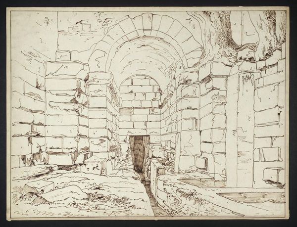 Curator: Thomas Girtin’s watercolor, "The Ruins of Middleham Castle, Yorkshire," presents us with a somber, yet evocative, scene of decay and lost grandeur. Editor: The crumbling stone and soft washes create a powerful sense of fragility. It makes you wonder about the labor, the hands that built this monument, now slowly returning to the earth. Curator: Indeed, the castle's state reflects broader shifts in power and the changing social landscape of the time; its abandonment speaks volumes about evolving aristocratic structures. Editor: And the way Girtin has rendered the stone—you can almost feel the rough texture, see the individual blocks, each one shaped by human hands and now weathered by time. Curator: Consider also, how the image might have functioned; a visual record, a picturesque souvenir, perhaps, for a public increasingly interested in their nation's past. Editor: I agree, it is powerful how Girtin highlights the materiality of the castle, the construction, to bring it back to social, historic, and labor-centered roots. Curator: A reminder of how art can serve as both a historical document and a vehicle for interpreting the past. Editor: Precisely; the subtle material details allow us to see beyond romantic ruins and into the processes of art making and history.
