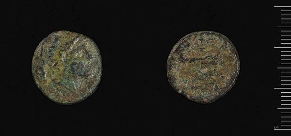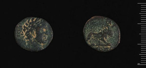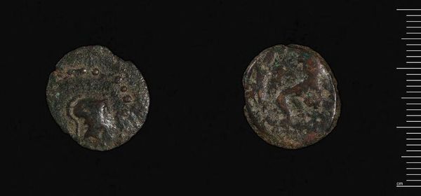 Curator: This ancient coin, attributed to Antoninus Pius, is known as a "Coin of Antioch ad Orontem." Its weight is approximately 8.09 grams. The material gives it such palpable presence. Editor: There's a profound sense of age here, almost primordial, with the patinated surface telling tales of empires and trade routes, speaking to the economic realities of its time. Curator: Observe the coin's circular format, a self-contained universe of symbolic representation, the incised details creating a play of light and shadow. Editor: The imagery likely served to legitimize power structures, reflecting how rulers projected their authority and influenced social behavior through control of currency. Curator: Indeed. The coin's formal qualities, its composition and relief, are quite typical of the period. Editor: I find myself pondering who held this coin, what transactions it facilitated, and how it impacted their lives. It's a potent reminder of the enduring power dynamics embedded within seemingly simple objects. Curator: Considering its weight and metallic composition, it also prompts consideration of the technological and artistic knowledge required to produce this artifact. Editor: Absolutely, and it offers a lens through which we can consider the complex relationship between power, value, and representation. Curator: Quite a thought-provoking design. Editor: Yes, a small object holding such significance.