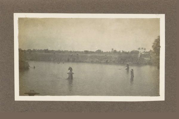 Editor: This albumen print, "Rivier de Nijl treedt buiten zijn oevers" or "The Nile River Overflowing" was created sometime between 1890 and 1910. It's an anonymous work, showcasing a serene landscape of a flooded Nile with a pyramid in the background. I’m struck by the image’s ability to evoke both the monumentality of ancient Egypt and the powerful force of nature. What's your take on this, particularly focusing on its production? Curator: It's fascinating to consider this photograph through a materialist lens. The albumen print process itself is key: think of the labor involved in producing albumen from egg whites, coating the paper, and the specific chemical reactions creating this sepia tone. How does this particular method of production affect our understanding of the depicted scene? Editor: Well, it gives it a timeless, almost ethereal quality. It feels less like a news photo documenting a flood and more like a romanticized vision of Egypt, playing into Orientalist tropes. Does the labor invested also highlight social and economic dynamics of the era? Curator: Exactly! The industrialization required for the large-scale production and consumption of images like these points to the economic forces at play. Think about the photographers catering to European tourists wanting to capture "exotic" views. And what of the local populations impacted by the annual flooding and by this image production? Whose labor *isn't* visible here? Editor: I see your point. The image romanticizes, maybe even obscures, the lived experiences of Egyptians. So, by considering the albumen print process and its socioeconomic context, we can decode this “landscape” not just as a pretty view, but also a product of complex power dynamics and consumption. Curator: Precisely. Understanding the materials, the production methods, and their place within the broader historical and social landscape enriches our appreciation and understanding significantly. Editor: This has definitely given me a new perspective on analyzing photographic art. Thanks!