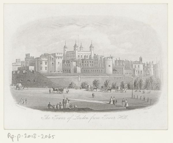 This print of Windsor Castle was likely made in the 18th or 19th century, though the artist remains unknown. It’s rendered through the technique of engraving, which involves meticulously incising lines into a metal plate. Ink is then applied, and the surface wiped clean, leaving ink only in the etched grooves. The plate is pressed onto paper, transferring the image. The choice of engraving is telling. Unlike painting, which emphasizes the artist’s unique touch, engraving is a reproductive medium. It allows for the mass production of images and their wide circulation. In the context of Windsor Castle, this print becomes a vehicle for disseminating an idealized view of British heritage. Engraving also speaks to the social context of labor. It demands technical skill and patience, reflecting the values of precision and repetition characteristic of early industrial production. By understanding the printmaking process, we see how this image participates in the broader social and economic landscape of its time. It allows for the democratization of the image, but also a system of artistic labor.