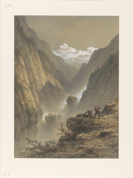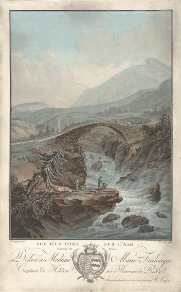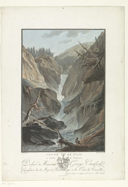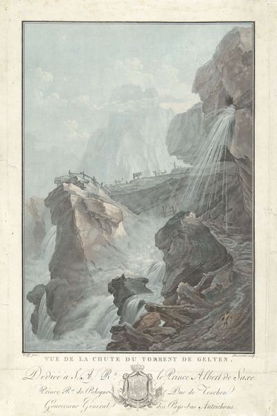 Charles Melchior Descourtis created this aquatint depicting the Schild-Wald-Bach in winter. Water is a dominant symbol here, flowing down the mountainside, which has historically signified purification, life, and renewal across cultures. The cascade here is reminiscent of ancient Greek depictions of nymphs or water spirits, beings who embody the life-giving force of nature. Yet, consider too how the motif of cascading water appears in other, seemingly disparate contexts. Think of Renaissance fountains, Baroque waterfalls in garden grottoes, or even modern-day representations in advertising and cinema. The human subconscious is captivated by the movement and sound of water. It evokes a sense of tranquility and the passage of time. Notice how the artist captures a specific moment in time, yet the enduring symbol of water reminds us of the cyclical nature of existence, forever flowing, eroding, and shaping the world around us.