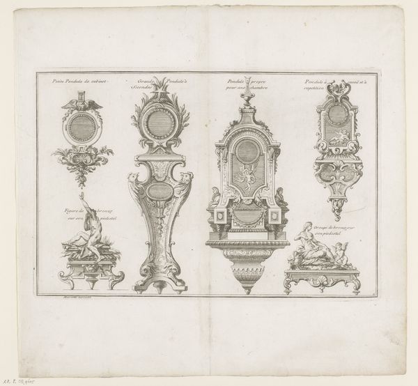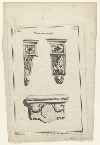 André Charles Boulle created this engraving, "Mirrors and Tables," showcasing designs laden with symbolic weight. The recurring motif of human faces, or masks, adorning these furnishings, reminds us of the ancient Greek theatrical masks, symbols of transformation and the embodiment of different characters or personas. These faces, embedded in the very structure of domestic life, speak to a deeply ingrained human desire to animate our surroundings, projecting our own psychological states onto the objects we inhabit. Consider how the mask, originally a tool for ritual and performance, evolves here into a mere decorative element, yet still carrying echoes of its primal power. It resurfaces throughout history, from the grotesque masks of medieval gargoyles to the stylized visages of Renaissance portraiture. This echoes our collective memory, a subconscious recognition of symbols that continue to exert their influence, shaping our understanding of art, culture, and the very essence of what it means to be human.