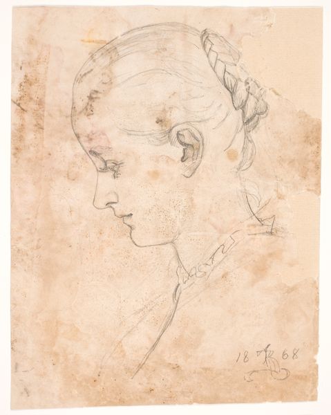This is Wilhelm Marstrand's pencil drawing, "Fru Have." Marstrand coaxes a remarkable likeness of his sitter. He has worked with careful, light strokes to describe not only her features, but the various fabrics that adorn her head and shoulders. The cap, in particular, with its delicately rendered lace trim, speaks to the immense amount of labor that went into fashionable garments of the era. Notice the details; the subtle shifts in tone, the delicate rendering of texture. This drawing is more than just a portrait, it's a window into the economics of appearance. The details of the sitter's dress code hint at the wider social issues of labor, class, and consumption. The cap is a signifier of status, but it also represents a network of skilled work from the spinning of the thread, to the weaving of the cloth, to the making of the lace. By attending to these elements, we can appreciate the drawing not just as a work of art, but as a material document of its time.