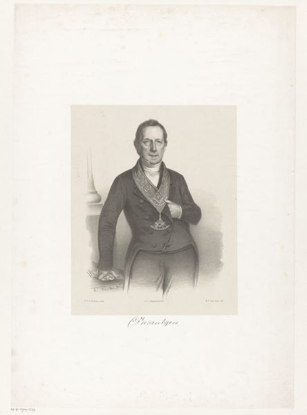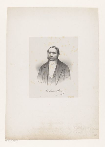 This is S. Rosenthal's "Portret van onbekende man", a monochromatic print, now held at the Rijksmuseum. The composition centers on a seated man, his form articulated through subtle gradations of light and shadow. The texture, rendered through fine lines, lends a tactile quality to the figure's clothing and features. The visual structure adheres to a formal arrangement where the subject's pose and attire subtly reflect societal codes. The artist’s skillful deployment of chiaroscuro enhances the subject’s presence, yet the absence of vibrant color encourages a focus on form and structure. We might consider how the very act of portraiture engages with broader themes of representation and identity. The print operates as a semiotic system, inviting us to interpret the cultural meanings embedded in the subject's appearance and the artistic techniques employed. The careful balance of form and content invites ongoing interpretation and reflection, reminding us that meaning is never fixed but always in flux.