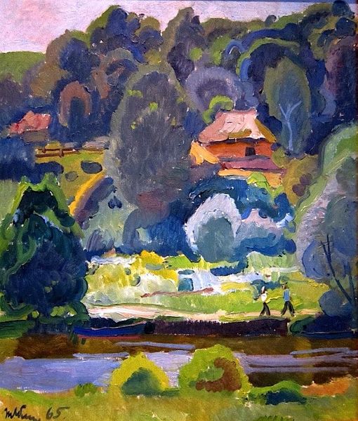 Istvan Ilosvai Varga made this oil painting, Nagybánya, which depicts a rural scene, possibly in Hungary or a surrounding region. The vivid colors and abstracted forms suggest a connection to early 20th-century Expressionism, a style that often conveyed emotional intensity and a subjective interpretation of reality. The title refers to a town known for its artist colony, which played a vital role in the development of Hungarian art. It became a space where artists explored new styles and approaches outside the rigid academic structures of the time. The avant-garde were taking hold and this painting could be read as a comment on the move away from traditional representations. To truly understand this work, we must look at the historical context of the Nagybánya colony and the socio-political forces that shaped the artistic landscape of Hungary in the early 20th century. Investigating archival documents and critical reviews from that time can help reveal the complex interplay between art, society, and the institutions that supported or challenged it.