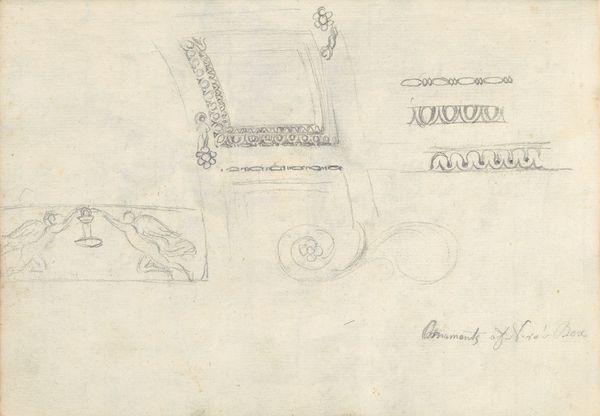 Curator: This lovely pencil drawing from 1865 is by P.C. Skovgaard, and it's titled "To sandstensvaser, den ene tom, den anden med en agarveplante. Gesims med profilering og pilastre med korintiske kapitæler". It resides here at the SMK, Statens Museum for Kunst. What's your first impression? Editor: Utter serenity. It’s as if the architecture and plant life are holding their breath. The delicate pencil work makes it feel ephemeral, like a fleeting thought. Curator: Exactly. The drawing's restraint is so powerful, isn't it? Skovgaard was deeply engaged with classicism at this point in his career, and you see it here in the Corinthian capitals. He was, of course, primarily known for his landscapes, and that comes through as well. Notice how the agave almost spills out, challenging the strict architectural lines. Editor: The agave feels like a small act of rebellion against the rigid order, a symbol of natural resilience amidst the formality. And speaking of symbols, the vases—one empty, the other holding life. Is he suggesting a choice between barrenness and vitality, perhaps a reflection on artistic inspiration itself? Curator: Oh, that's lovely. Yes, a rumination on creativity...The classical elements provide the structure, the container if you will, and then the agave represents the flourishing idea. A particularly romantic concept of creativity as an untamed life force. Editor: Or maybe it's about time itself. The stone representing the enduring past, and the agave, the ever-changing present, rooted but reaching. The contrast really highlights how cultural memory interacts with the present moment. Curator: Beautiful. The classical motifs do speak of the enduring, and the seemingly casual sketch format emphasizes a transient quality, like capturing a fleeting impression rather than building a monument. I think he wanted us to reflect on the intersection of permanence and impermanence. Editor: It also makes me consider how we preserve memory through art and architecture, how certain symbols, like the Corinthian capitals, keep reappearing. The drawing itself becomes a vessel for remembering, reinterpreting the past for our present gaze. Curator: Precisely. It shows how looking back allows us to reflect and ultimately move forward. Editor: A reminder that even sketches can hold entire worlds.