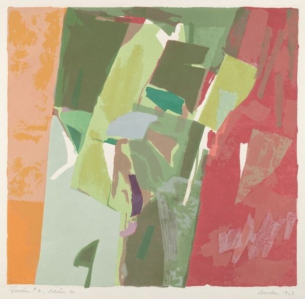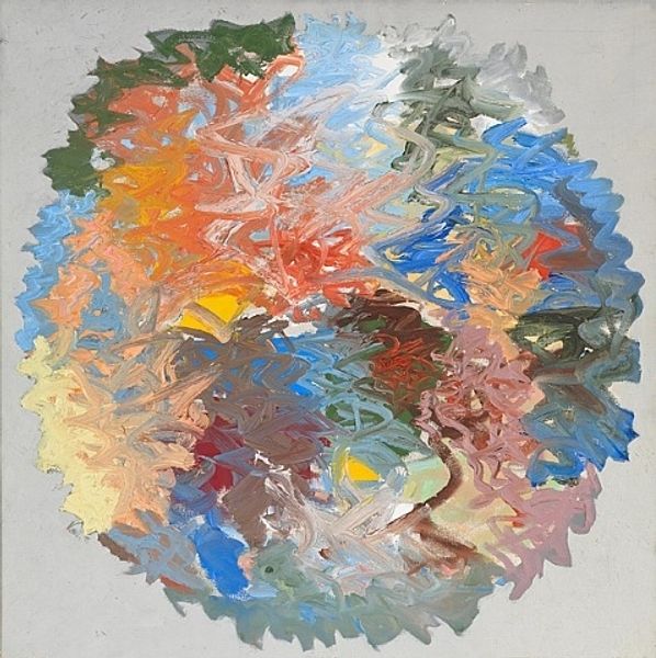 Worden Day's "Mandala II" presents us with a captivating interplay of form and color, inviting contemplation of its intricate structure. The composition is dominated by a circular form, densely filled with linear hatchings that create a textural depth. Radiating bars of muted pastel hues—ranging from soft yellows to gentle blues—intersect with the circle's rigid geometry. These colors soften the intensity of the black and white lines, evoking a sense of ethereal balance. The linear texture of the central circle contrasts with the flat blocks of diffused color and the sharp, branching forms around the perimeter. By calling the work "Mandala", Day invokes a symbol of wholeness, suggesting a visual metaphor for interconnectedness. The artist uses simple shapes to explore themes of harmony and disarray, inviting us to explore our own responses and interpretations. "Mandala II" becomes a site of reflection and subjective meaning, where the viewer engages in an evolving exchange.