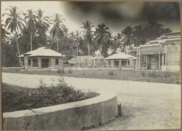 This photograph, entitled "Brug," captures a scene of everyday life with a bridge, made by an anonymous photographer. The bridge itself is made of concrete, a material strongly associated with modernity and industrialization, particularly in the early 20th century. The smooth, man-made texture of the bridge starkly contrasts with the surrounding lush, tropical landscape. The construction of the bridge likely involved significant labor, from quarrying the raw materials for the concrete to its actual pouring and construction. This involved both skilled workers and manual laborers. The placement of the bridge within the landscape can be seen as a symbol of colonial intervention, where infrastructures were imposed upon existing environments to facilitate trade. Paying attention to materials, making, and historical context helps us to understand the social and cultural significance embedded within this seemingly simple photograph. It reminds us that even the most functional objects carry stories of labor, power, and cultural exchange.