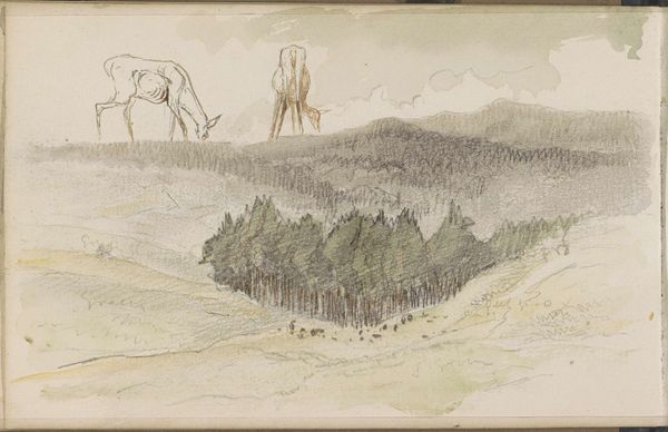 Johannes Tavenraat created this sketch, "Boomstammen en herten," featuring tree trunks and deer using pen in gray. Dominating the scene are the deer, creatures that have long carried symbolic weight, representing grace, gentleness, and a deep connection to the natural world. The tree stumps, stark in their stillness, evoke themes of mortality. The motif of the deer appears in many mythologies, from the Greek goddess Artemis, the protector of wild animals, to the Celtic deity Cernunnos, often depicted with antlers. Similarly, tree stumps can be traced back to ancient depictions of vanitas, reminding us of the transience of life. The emotion these figures evoke is complex. Perhaps we should be moved by the deer, or by the knowledge that their natural environment is slowly changing. The emotional power here lies in the contrast between the vitality of the deer and the solemn stillness of the trunks. This sketch engages us on a deep, subconscious level.