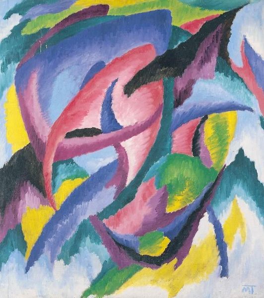 This is a painting by Janos Mattis-Teutsch, called Composition, and it is hard to date. Looking at the surface of this picture you can see that the paint application is really physical; you can almost feel the artist pushing and pulling the paint across the canvas, trying to get it just so. The painting is made up of looping colours, which are bold and bright; yellows, pinks, blues and greens. See how Mattis-Teutsch uses black to anchor the forms? The eye jumps around the canvas, not really sure where to land. I like that. The painting reminds me of Kandinsky, another artist interested in the spiritual in art, and the relationship between colour and form, but Mattis-Teutsch feels more raw and expressive. It feels less important that we understand what the picture is *of*, and more that we experience it, intuitively.