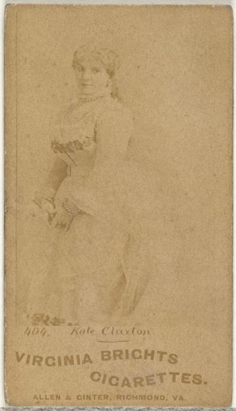 This portrait of Mable Clark was made by W. Duke, Sons & Co. around the turn of the 20th century, using photographic methods. But it’s not just a picture – it’s also a piece of industrial design. The sepia tone and small size speak to its original purpose: a collectible card distributed with Duke Cigarettes. Think of it as an early form of advertising, designed to be traded and collected. These cards were made using industrial printing processes, a far cry from the hand-painted portraits of the wealthy. The image itself, while seemingly straightforward, is deeply tied to labor and class. Mable Clark, the actress, becomes a commodity, her image mass-produced to sell cigarettes. These cards offer us a glimpse into the everyday lives and aspirations of people at the time, showing how photography became deeply embedded in consumer culture. This mass production of images democratized art, making it accessible to a wider audience, but also blurring the lines between art, advertising, and commodity culture.