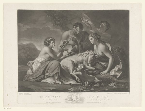 Louis Marin Bonnet created this stipple engraving called "Venus wordt gestreeld door Cupido" in France during the late 18th century. This print depicts Venus, the Roman goddess of love, being caressed by her son, Cupid. During this time, images of classical mythology were popular in France, especially among the aristocratic elite. Artists such as Bonnet often catered to this market, producing elegant and refined works that celebrated beauty, love, and pleasure. The stipple engraving technique, with its soft and delicate textures, was well-suited to these themes, adding a sense of luxury. These images were more than simple decoration, they reflected the values and aspirations of the upper class, who saw themselves as heirs to the classical tradition. However, the French revolution was just around the corner, and social historians see in the iconography of these images also an indirect source of revolutionary fervor. By examining sources such as period letters, social commentaries, and the records of art institutions, we can better understand the complex relationship between art and society in 18th-century France.