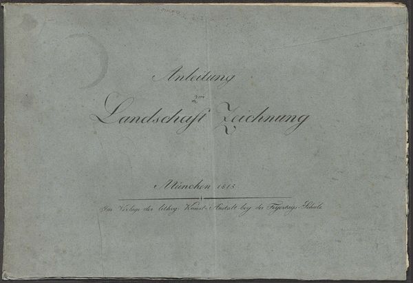 Curator: This is the cover for "Landschap Studiën eerste levering," a lithograph created by Barend Cornelis Koekkoek around 1829-1830. The piece, showcasing an impressive level of typographic artistry, is currently held in the Rijksmuseum collection. Editor: It has an antiquated charm to it. The careful, flourished script gives the page a distinctly formal yet aged presence, like a historical document that you might find tucked inside an old book. It gives a peek into the romantic landscapes it heralds, doesn't it? Curator: Precisely. Koekkoek was a prominent figure in the Dutch Romantic movement, and this lithograph speaks volumes about the period's aesthetic sensibilities. The romanticists saw nature as divine. There was also increasing accessibility to art education, and we see artists experiment with various media, in this instance lithography allowed the mass production and distribution of artworks. Editor: Mass production makes one question who had access, though, doesn’t it? Even so, such design choices like those florid flourishes seem inherently intertwined with notions of luxury and high art. Did this make nature only consumable through an elite lens? I suppose the formal, hand-lettered title and his bolded name asserts artistic authority but simultaneously limits access based on literacy and cultural capital. Curator: It’s a valid point to consider how presentation mediated accessibility. Yet, these “Landscape Studies” allowed Koekkoek to engage with a rising middle class interested in art and travel, cultivating a taste for idealized views of their native land, through easily distributed prints. Editor: But this aesthetic idealization surely came with a cost. What were these images selling? Nostalgia for simpler times perhaps or was it something more? Koekkoek wasn't just depicting landscapes; he was curating a particular version of Dutch identity linked with an untouched, arguably imagined, pastoral history, perhaps inadvertently influencing how future generations would view and interact with those landscapes. Curator: I agree it highlights the constructed nature of landscape appreciation. Ultimately, studying it reveals not only artistic techniques but how representations of the natural world are inextricably linked with socio-political narratives of that time. Editor: This is a delicate, insightful way to engage in art. It urges us to consider the implications such artworks had beyond pure aesthetics. Curator: It provides a reminder of how art intertwines with society in so many facets of daily living.