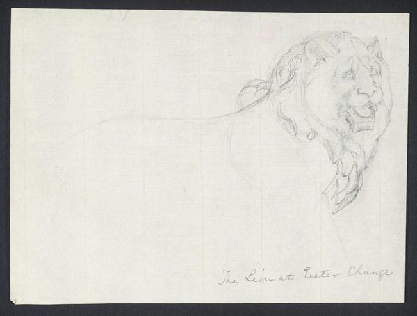 Editor: Here we have John Flaxman's "The Lion at Exeter 'Change," a pencil drawing held at the Tate. It’s very faint, almost ghostly. What symbols and meaning do you see in this simple sketch? Curator: The lion, often a solar symbol, embodies strength and royalty across cultures. Flaxman likely encountered this specific lion at the Exeter Exchange menagerie. Editor: A real lion? Curator: Yes. Its captivity transforms the lion from a symbol of freedom to one of subjugation, perhaps reflecting societal control over the natural world. Does that shift your perception? Editor: Definitely, I hadn’t considered that. Now I see a commentary on power and constraint, rather than just a majestic beast. Curator: Precisely. The image holds layers of meaning, depending on context and cultural memory.