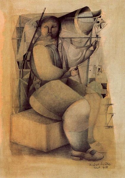 René Magritte painted what we see here in oil paint, a scene with a shrouded figure, a tuba, and a suitcase. There's something deeply unsettling about the stillness of this composition, like a stage set before the play begins. Magritte’s brushstrokes are deliberate, almost mechanical, which adds to the painting's dreamlike quality. The colors are muted, but they vibrate against each other, creating a subtle tension. Look at the way the tuba reflects the light, as it suggests a potential for sound. The draped figure feels so vulnerable and mysterious, the fabric obscuring their identity, and the way they are touching their neck makes me think about unseen pressures or anxieties. The suitcase seems to suggest a journey, perhaps, or a retreat. Magritte has definitely been looking at de Chirico and early surrealism. He understands the potential of ordinary objects to evoke extraordinary emotions. This is a very beautiful painting and one that stays with you long after you've seen it.