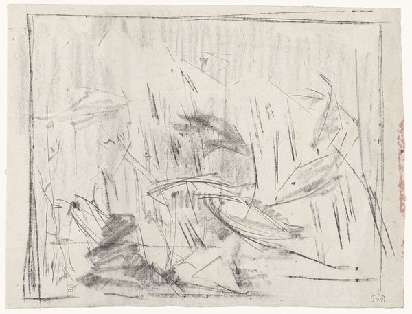 This is a drawing of woodcutters by Anton Mauve, it is held in the Rijksmuseum and there is no recorded date. The drawing presents a dense, interwoven network of lines, capturing woodcutters at work amidst a forest setting. The immediate impression is one of dynamic energy, rendered through a network of hatching and cross-hatching that defines the space. The composition teeters on the edge of abstraction; the eye struggles to differentiate the figures from their surroundings. This effect dissolves the traditional figure-ground relationship, integrating man and nature into a unified field of activity. The absence of clear, definable forms challenges our perception, inviting a deeper engagement with the materiality of the drawing itself. Mauve prompts questions about representation. Is the artist interested in illustrating the scene, or is he highlighting the act of mark-making? The overall effect of the drawing lies in its capacity to evoke a sense of the forest's chaotic beauty and the physical exertion of labor through purely formal means.