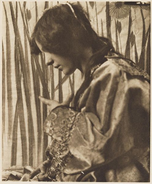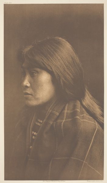Edward S. Curtis made this photogravure, *Arikara Girl*, as part of his ambitious project to document Native American tribes in the early 20th century. The image presents a profile view of a young woman, her gaze directed off to the right, adorned in traditional attire. It comes from a time of immense social change and government policy which aimed to assimilate Native Americans into mainstream culture, often suppressing their languages, customs, and spiritual practices. Curtis's work, while intending to preserve a record of these cultures, has been critiqued for romanticizing and, at times, misrepresenting Native American life. Analyzing Curtis's photographs demands an understanding of the complex historical, social, and political forces at play during this period. We must turn to historical documents, oral histories, and the perspectives of Native American communities themselves to fully understand the implications of this image, and the impact of Curtis’s project on those he sought to document.