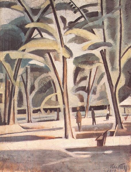 Kmetty János made this painting, City Park, sometime in the mid-20th century, using oil on canvas. There’s something delightful about how the shapes are all geometric, and the colours are really muted. It gives me the sense that painting is about taking something real and making it exist on a different plane, which is something I'm always aiming for in my own work. The paint has a lovely surface texture, which seems to invite the eye to wander, and the colour relationships, even though they’re very limited, create a beautiful sense of light and depth. I keep being drawn to the sharp angles, and how they work against what I expect trees to look like; but look closer, and you'll see János doesn't want us to forget that we're looking at a park. He's found a way to keep the idea of representation at play, while also trying something new and exciting. This focus on structure reminds me of the work of Paul Cézanne, another artist who spent his life trying to represent reality through geometry. Both artists remind us that painting isn't just about reproducing an image. It’s also about re-thinking the relationship between us and the world around us.