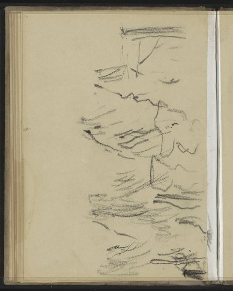 Editor: Here we have Niels Larsen Stevns's "Bølgestudie (?)," made sometime between 1864 and 1941. It’s a pencil and graphite drawing on paper. My first impression is a flurry of energy, a real sense of movement. It reminds me a bit of musical notations. What do you see in this piece? Curator: Ah, yes! Movement, scribbled energy… It’s funny you mention music. I see this less as a direct depiction of waves and more as a record of the *feeling* of waves. Stevns isn't necessarily trying to give us photorealistic waves; instead, it feels like a fleeting, impressionistic response. Do you ever feel like some moments can't be captured in perfect detail, only in the echoes they leave behind? Editor: I think so, that makes sense! So, you’re saying it’s more about the sensation of the waves, rather than the literal waves themselves? It does look like he quickly jotted down some notes... I'm struck by the difference between the wilder, almost chaotic lines at the top compared to the calmer ones below. Curator: Exactly! It makes me wonder about the specific conditions in which he created this. Was the sea particularly rough that day? What was he feeling? Perhaps even thinking? And that contrast you pointed out – it adds depth, doesn’t it? Almost as if the 'wilder' lines are the wind crashing around our ears while the 'calmer' ones evoke the deeper currents and quiet swells underneath. Editor: I didn’t think about it like that, that is a lovely detail. Now, when I look at the 'wilder' lines at the top, it reminds me of birds in flight, perhaps sea gulls? Thank you for pointing it out; it completely reshaped my view of the sketch. Curator: My pleasure! Sometimes art just needs a little nudge to spark a new thought, don't you think?