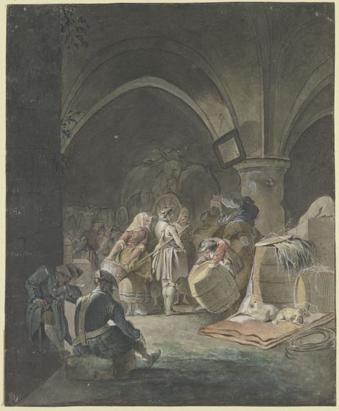 Franz Ludwig Catel’s painting ‘First Steps,’ captures a domestic scene, using oil on canvas, where a child tentatively walks toward a waiting figure. The composition is structured by the architecture that frames the scene. The arches lead the eye from the dark foreground, filled with earthy tones, towards the bright, open landscape in the background. The artist uses this contrast of light and shadow to create depth, and to highlight the figures central to the narrative. The scene is carefully arranged. The figures are placed to direct attention to the child, emphasizing the human connection and narrative. This arrangement invites us to consider the painting not just as a depiction of a moment, but also as a constructed space where human experiences are thoughtfully presented. It is this interplay between the constructed and the representational that forms the painting's core interest, inviting viewers to look beyond the surface and consider the underlying structures that give meaning to the scene.