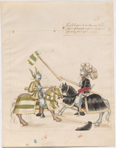 This is an anonymous drawing of a Mock Joust of War with Fixed Shields. We don’t know who made it, but we can imagine a context where it might have been made. The joust was a fundamental ritual of the European aristocracy. It was both a symbol of and a training ground for warfare, but over time it transformed into a complex performance of honor and identity. The combatants display wealth, skill, and chivalry in equal measure. While this drawing depicts a mock joust, the presence of elements like elaborate armor and noble steeds indicates the importance of spectacle and tradition. The drawing provides a lens into understanding the culture of medieval Europe and the values of its elite. It allows us to reflect on how societies construct and celebrate ideals of masculinity, honor, and power. It's a reminder of the enduring human fascination with both the theater and the reality of conflict.