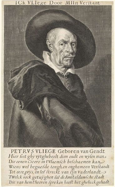 This is Franciscus van Schooten's etching, "Portrait of a Man with a Large Hat," made sometime between 1601 and 1646. At first glance, the tight composition—dominated by the man’s face, large hat, and ruff—grabs our attention with its intricate detail. The artist uses a dense network of fine lines to construct form and texture, creating a rich visual experience. Schooten’s technique, particularly his strategic use of hatching and cross-hatching, evokes a palpable sense of depth. The contrasting light and shadow not only define the man’s features but also bring a dramatic quality to the portrait, drawing the viewer's gaze. Consider how this treatment relates to semiotic interpretation. Each stroke, each shaded area, contributes to a constructed image that signifies not just a man, but perhaps also status, character, or even a story. The hat, an obvious signifier of status, together with the ruff around the neck, frames the face as a focal point. Ultimately, the delicate balance of light and shadow, meticulously etched into the plate, serves as a powerful means of expression. It’s a reminder that artistic meaning resides not just in what is depicted, but in how it is rendered.